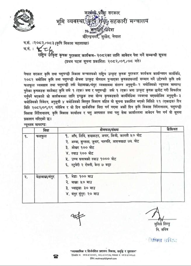 भूमि व्यवस्था कृषि तथा सहकारी मन्त्रालय वीरेन्द्रनगर,सुर्खेतको सूचना !!